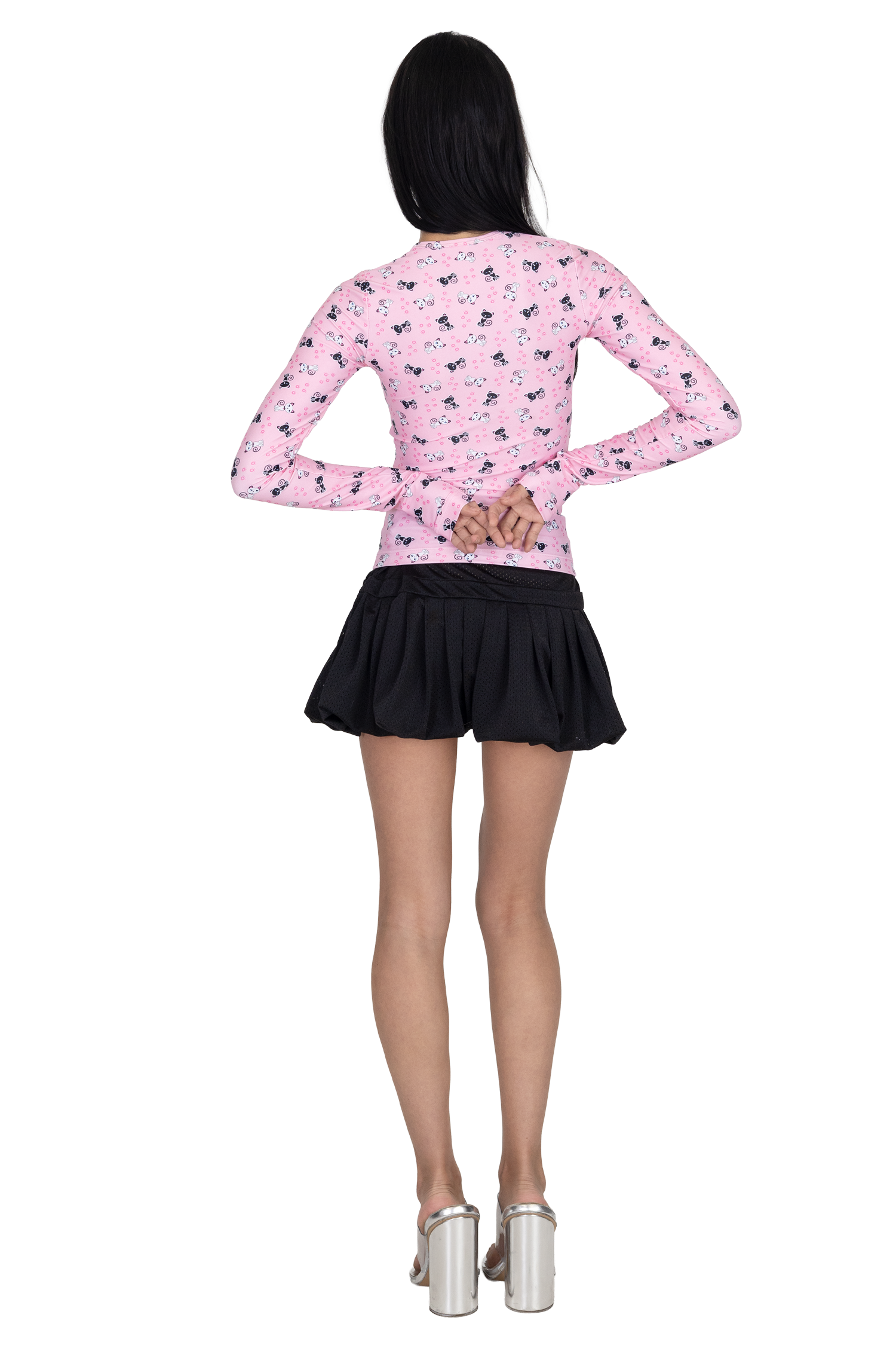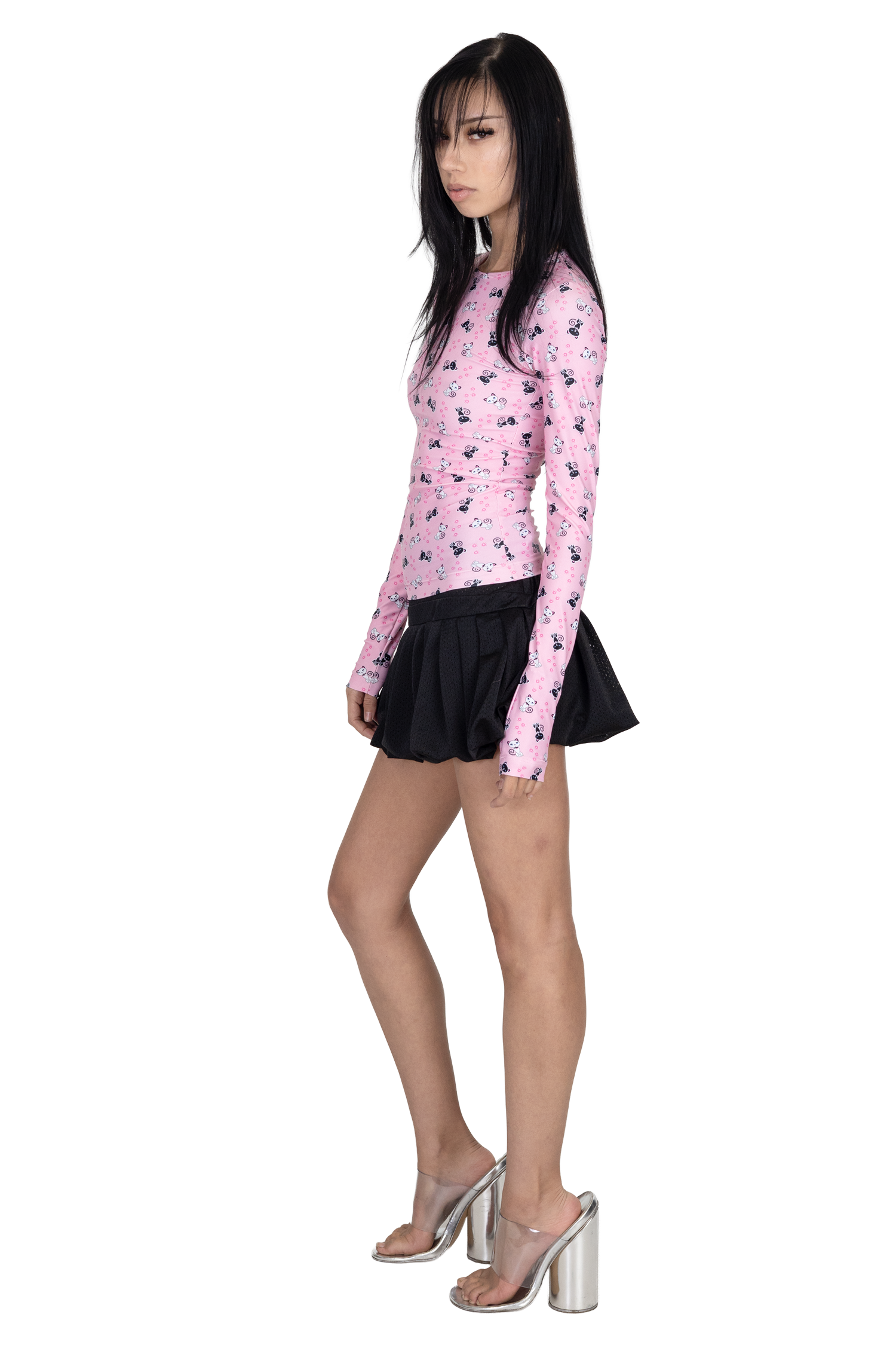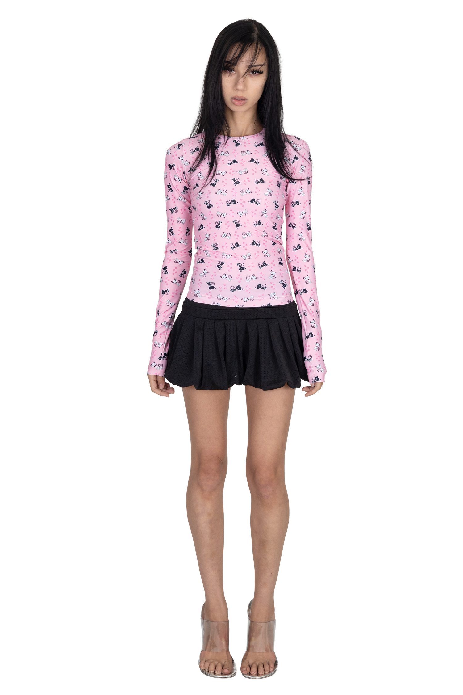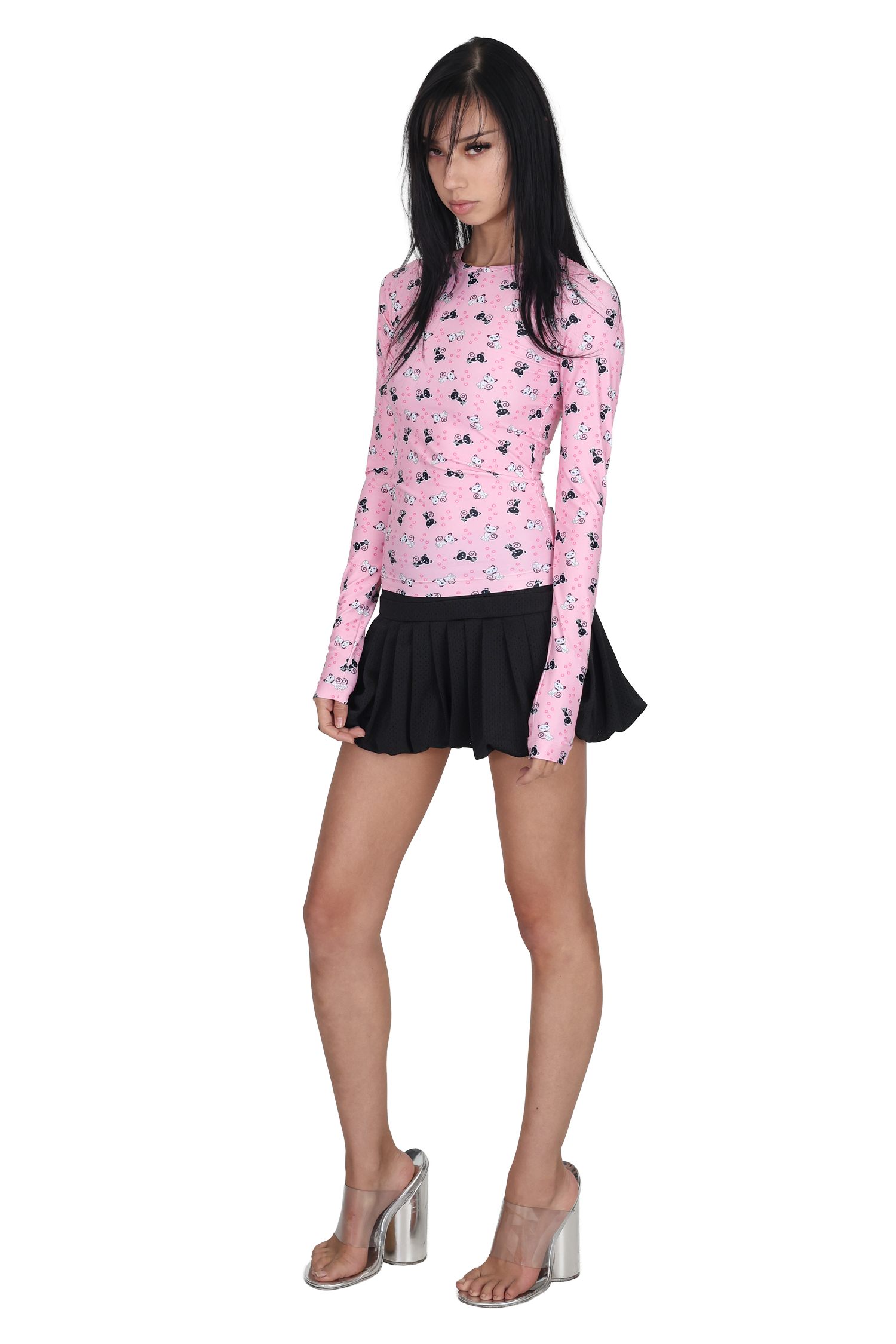 The Scene Long Sleeve in Pink City Kitty puts a playful twist on a wardrobe classic. Featuring extra-long sleeves, a crew neckline, and a full-length body, it offers a sleek and comfortable fit. The eye-catching black-and-white cat print on a pink base adds a fun, statement-making touch to any outfit.