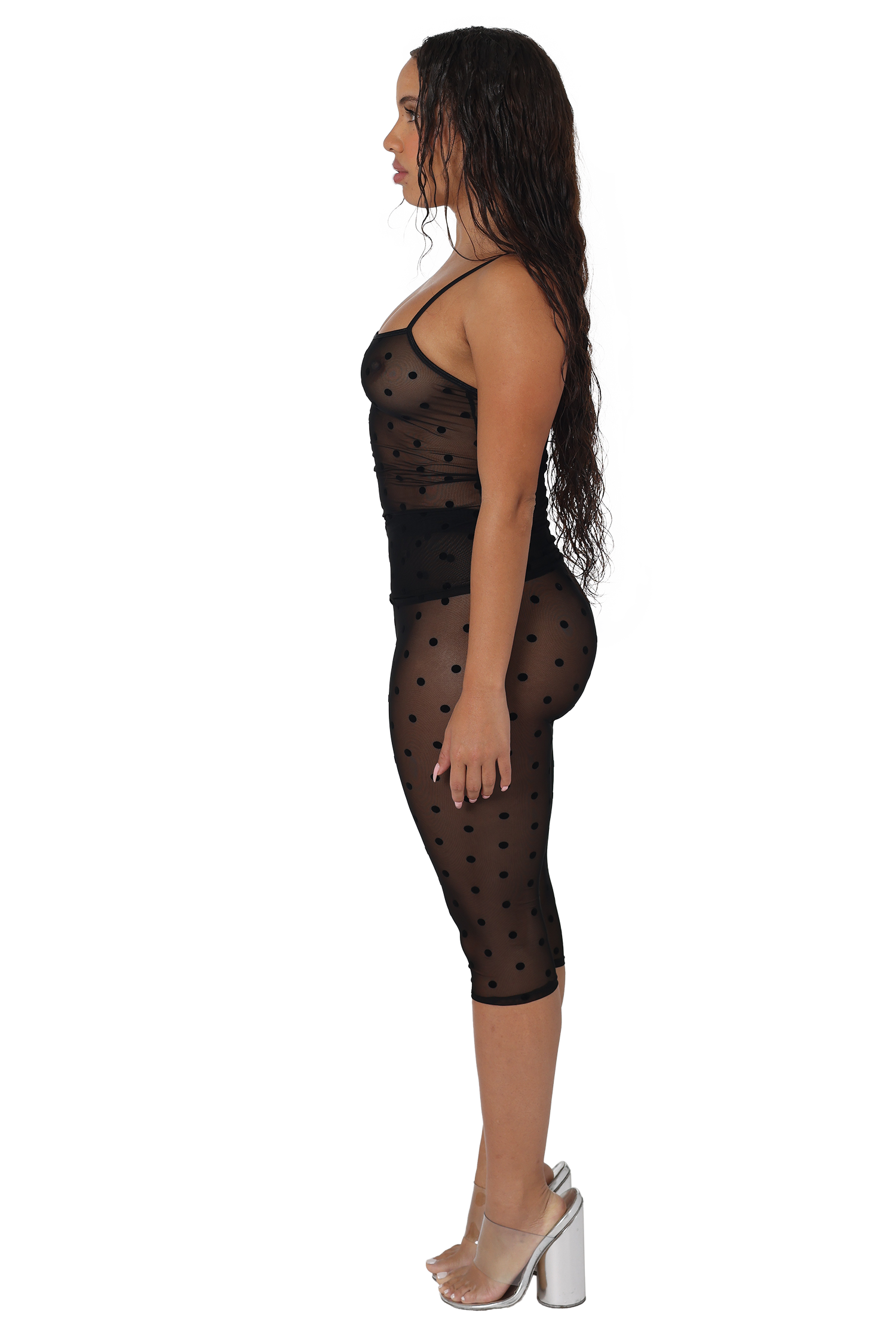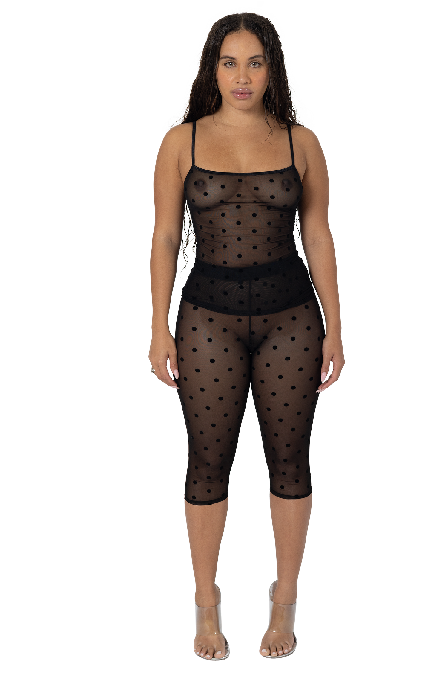 The Roma Capris in Mini Dots are a chic and modern take on a classic silhouette. Crafted from durable yet lightweight micro mesh, these fitted capris deliver the perfect combination of comfort and style. The flocked polka dot detailing adds texture and elegance, making them a standout addition to any outfit.